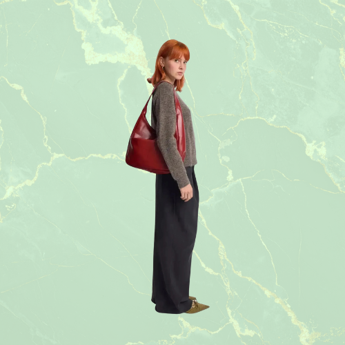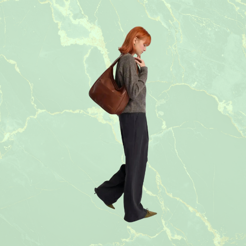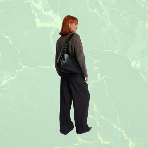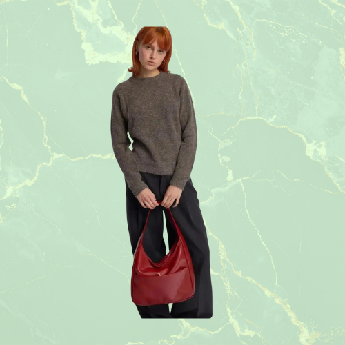 Helemaal niet. The Reclaim Tote is verrassend licht, zelfs wanneer ze vol zit. Het brede hengsel verdeelt het gewicht comfortabel over je schouder.